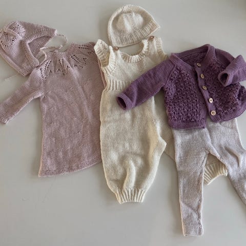 Babystrikkpakke selges (mulig å kjøpe enkeltplagg)