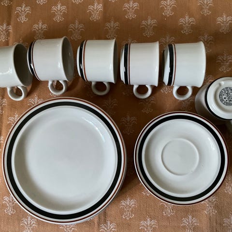 Dette serviset er en del av den omfattende Arctica-serien, som ble designet av Inkeri Leivo i 1979. Den spesifikke dekoren med de tynne linjene i beige og mørkeblått (eller grått) kalles Seita.