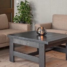 Salongbord 90x90x50 med betong bordplate. Pris kr 1500,-