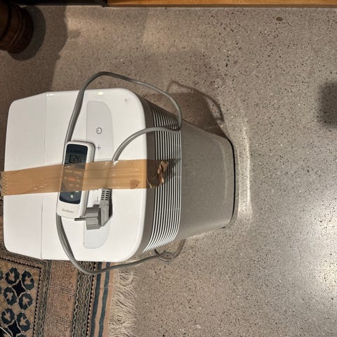 Bærbar aircondition fra Sandstrøm. Modell SAC12C21E. 12000 btu/h. Veldig lite brukt, kun brukt én sommer. Nypris: 5995 kr.