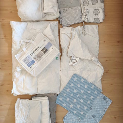 Kjempefint sengetøy selges. Et fint rosa sett i bomull og et grønt i flanell. Brukt kort tid da vi gikk over til annen dyne. Dundyne med 90 prosent dun. Myk og god.