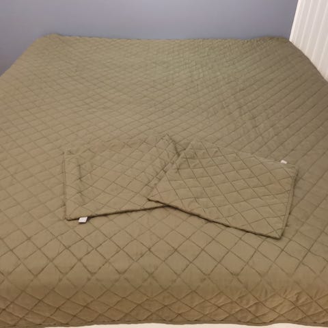 Neste nytt(fra2025)sengeteppe selges. Farge mørk blå.