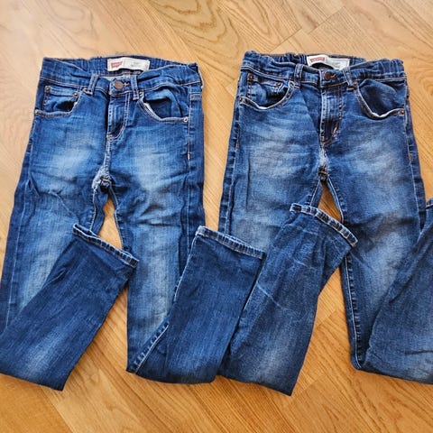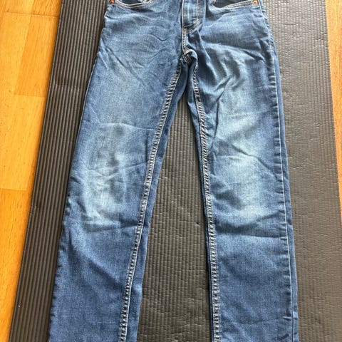 Levis 510 jeans i str 12 år. Denne er lappet og sydd flere steder (skritt foran og bak og på siden/hjørnet av bukselommene bak) - se bilder.