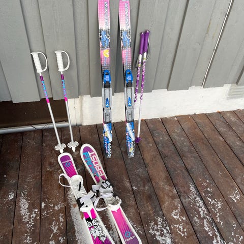 Skistaver 110cm gies bort. Den ene staven er litt bøyd, men det går fint å bruke de.