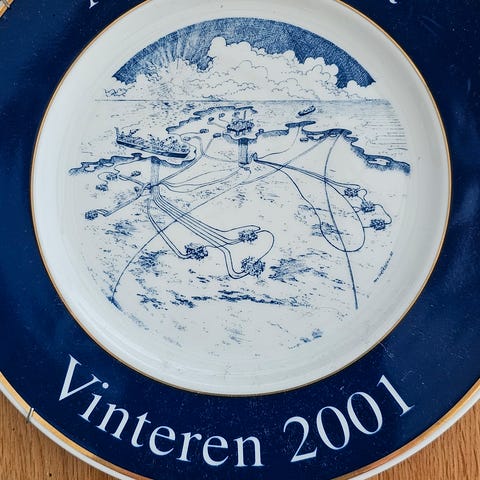 Stavangerflint Statfjord A minnetallerken i porselen.