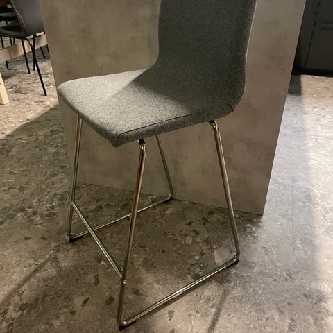 Hvit sammenleggbar barstol fra IKEA. Praktisk og god og sitte på. Metallben med gummi på fotstøtten.