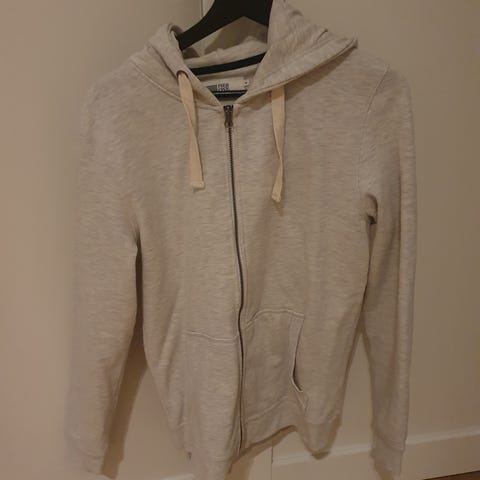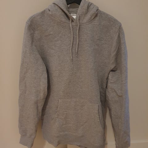 Grå hettegenser for herre i størrelse M. Genseren har hette med snøring og stor kengurulomme foran. Passer til hverdagsbruk og fritidsaktiviteter. Nøytral gråfarge som er enkel å kombinere med annet tøy.