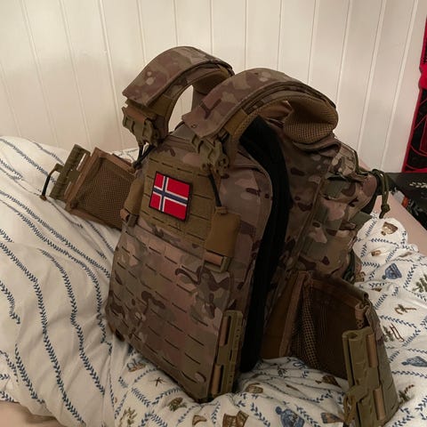 Selger min lite brukt stridskjorte pga. at den er for stor for meg. Nypris er 1800kr. Passer mer som en 3XL