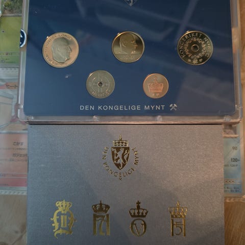 Selger et komplett og nummerert jubileumssett fra Kroningsjubileet 2006, utgitt av Det Norske Myntverket.