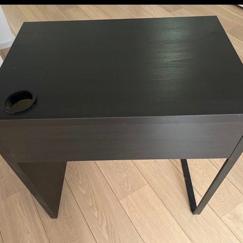 Gir bort en praktisk og stilren sort pult med smart uttrekkbart sidebord..