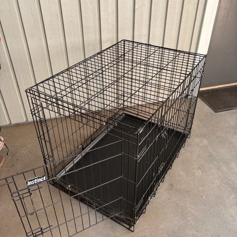Canem Pets hundebur selges da hunden har vokst seg ut av det. Buret har dører på kort og -langside, og plastikkgulv som gjør det lett å rengjøre. Sammenleggbart.
