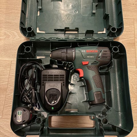 Bosch PSR 180 Li- 10 drill med to batterier, lader og koffert.
