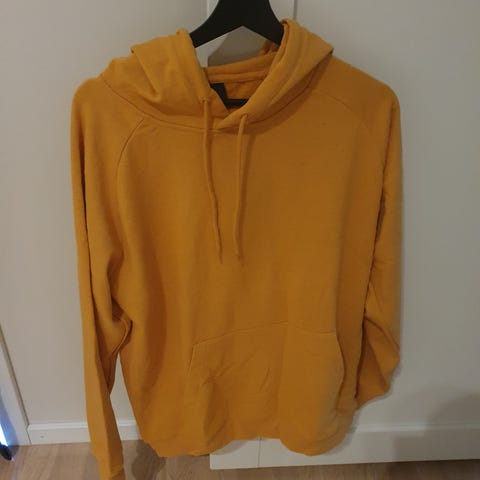 H&M hettegenser for herre i størrelse S. Genseren er grå og har høy hals med knappelukking og hette. Den har kengurulomme foran og ribbestrikkede kanter nederst og på ermene. Passer til hverdagsbruk og som et ekstra lag på kjølige dager.