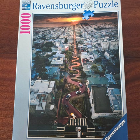 Ravensburger puslespill med motiv av Lombard Street i San Francisco. Puslet en gang.