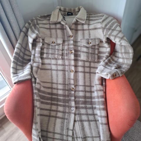 Ull kåpe i en fin kamelfarge. Står str 38 i denne, men vil si den er mer en L/XL. 80% ull i kåpa