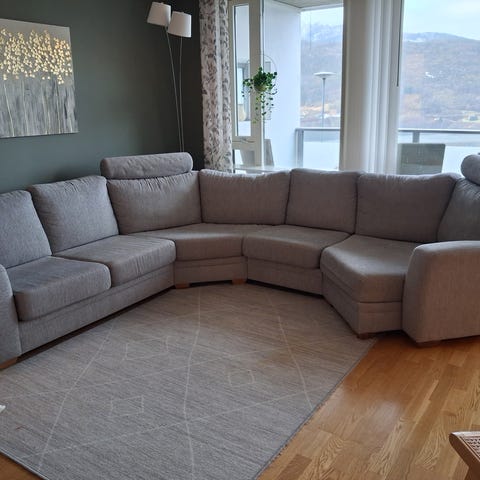 Kjempegod sofa å sitte i. 4 stoler som er regulerbare. Sittedybde: 50 cm