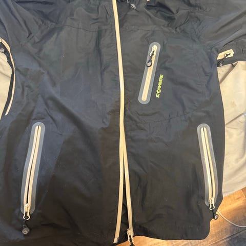 Skalljakke i veldig god stand. Snøring nederst på jakken, borrelås på ermene, netting som puster opp på ryggen. Vind stoppende matriale, hette med stremmung, fin jakke fra Stormberg. Passer ungdom ca 15-16 år