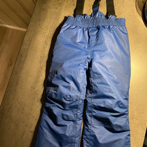 Barne vinterjakke og bukse sett i flerfarget design, storrelse 134, egnet for unisex barn. Jakken har hette og glideläs, og buksene har forsterkede knær med refleksdetaljer. Passer til bruk i kaldt vær. Kjopt pà Zalando i fjor.