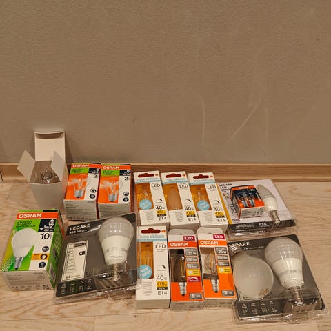 Selger 2 stk lyspærer fra IKEA. Vi får ikke brukt de likevel, da vi trenger dimmbare lyspærer. Selges 100kr stk.