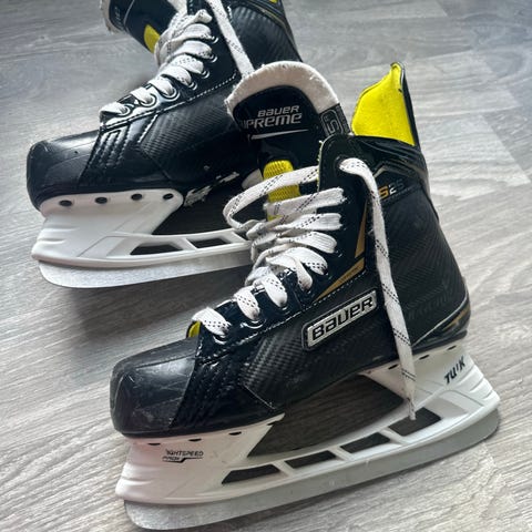 Bauer Supreme S160 ishockeyskøyter i størrelse EU 37,5 (UK 4,5 / US 5). Robuste hockeyskøyter med god støtte rundt ankel og fot med polstret innside.