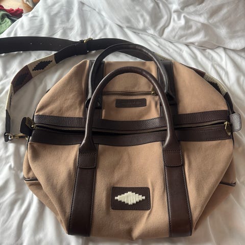 veske i stoff for unisex. Vesken har kombinasjon av tekstil og kontrastdetaljer i imitert skinn, med bærehåndtak på toppen. Hovedrommet lukkes med glidelås og har tekstilfôr innvendig samt en mindre innvendig lomme. Egnet som hverdagsveske eller som en enkel weekend- eller reiseveske.