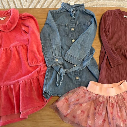 Klespakke med 3 søte kjoler og to par strømpebukser i str 92