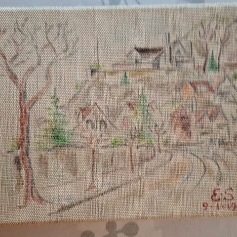 Gammelt Bergens bilde. Innrammet. 1928. Bxh 28x25 cm. Pris eller bud. Sendes mot porto og emballasje.