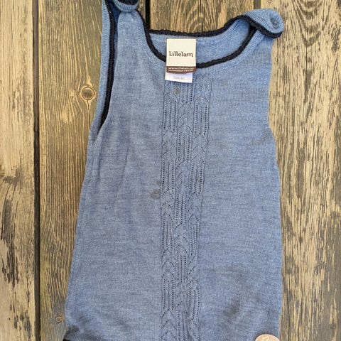 Klassiker. Lillelam selebukse i størrelse 68. Den har seler, fotdel med mønsterdetaljer og liten lomme i siden. Pent brukt til et barn og ingen bruksmerker, utenom litt nupper som alltid kommer på ulL.