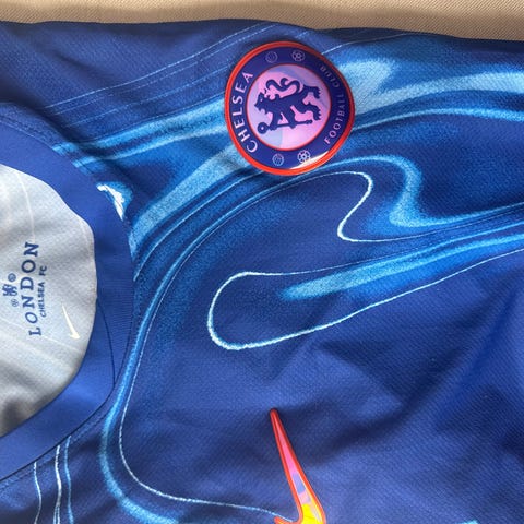 Adidas Chelsea 2011/12 David Luiz tredje drakt for herre i størrelse XS. Drakten er hovedsakelig hvit med sorte og gule detaljer, og har Chelsea-klubbmerke på brystet. Produsentlogo fra Adidas er plassert på fremsiden, sammen med tidligere draktsponsor på midten. Begge ermer har Barclays Premier-League merker.