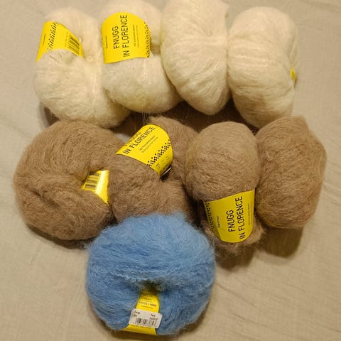 Garnpakker til Molly stripejakken ifra Bystrikk selges. Garnet er Fnugg in Florence fra Bæstmor. Garnet består av 100% børstet alpakka. Noe som gir lette og myke plagg. Strikkefasthet er 12 masker. Jakken strikkes på pinne 6 og 7. Overvidde er 115 cm