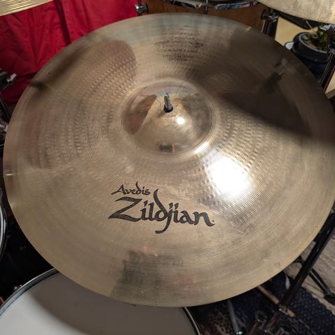 A custom 21" Anniversary Ride Cymbal
