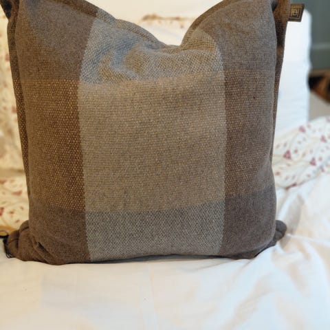 Putetrekk i resirkulert ull fra Halvor Bakke. Farge rustrød. Str 50x50. Har både pledd, bordløper og putevar i denne serien i min interiørbutikk DÉSIRÉE INTERIØR I Arendal. Kan sende mot at kjøper betaler frakt. Pruting besvares IKKE.