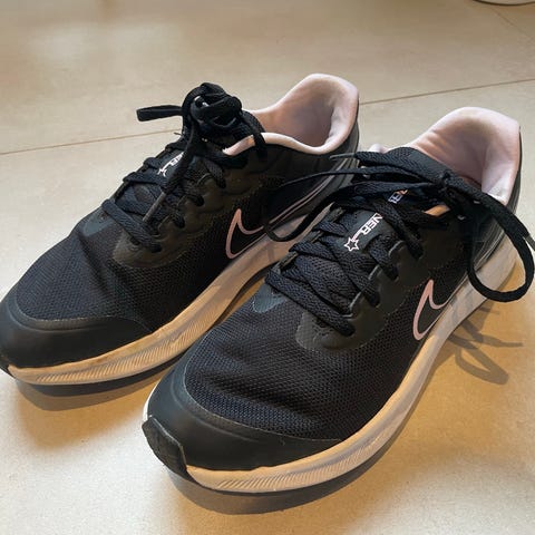 Nike React joggesko for barn, unisex, i størrelse 37. Skoene har overdel i pustende mesh i hvit med turkise og rosa detaljer. React-såle gir demping og komfort ved gange og løping. Yttersåle i gummi gir godt grep. Snøring for justerbar passform. Egnet til hverdagsbruk og lett trening for barn i størrelse 37.