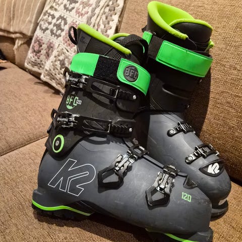 K2 alpinstøvler med flex 80 og lestbredde 103 mm. Støvlene har fire spenner og powerstrap øverst for justering og støtte. Modellen har Cushfit Comfort-innersko for økt komfort. Fargekombinasjon i grå og svart. Egnet til alpint bruk i preparerte bakker og freestyle. Selges fordi de er for store for meg😅 Mondopoint 29/29.5 som tilsvarer 45.5 og har en sålelengde på 336mm. Har original boks og alt👍 Åpen for bud:)