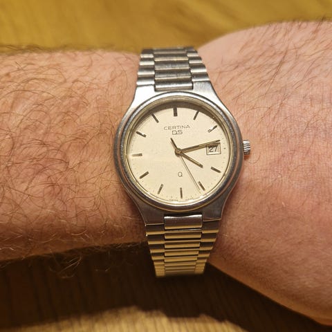 Selger en klassisk YEMA Paris quartz fra slutten av 70-tallet / tidlig 80-tallet. Klokken har integrert lenke og kantet kasse med tydelig inspirasjon fra ikoniske sportsmodeller fra samme periode, blant annet Royal Oak-designspråket.