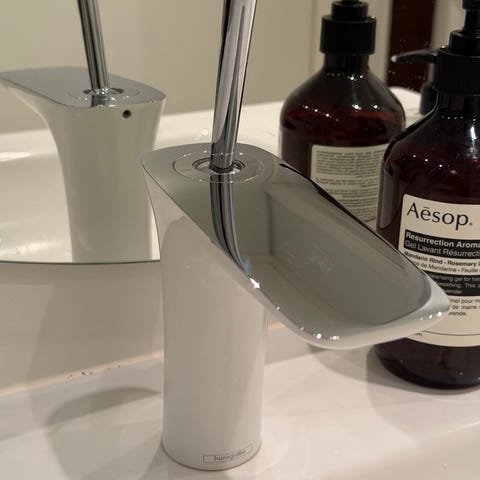 Brett til å sette over vask, fin detalj på badet. Utvider benkeplassen og minimerer søl fra såper og baderomsprodukter brukt ved vasken.