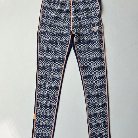 Kari Traa ullongs for dame i størrelse L. Lang underbukse i rosa med mønster og oransje sømmer og logo. Elastisk strikk i livet med Kari Traa-tekst. Egnet som innerste lag til ulike aktiviteter og hverdagsbruk i kjølige temperaturer. Svært lite brukt. Sender gjerne mot porto.