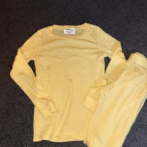 Helt nytt Pierre Robert ullundertøy sett for barn/unisex i størrelse 134/140 i bukse og 146/152 i genser. Settet består av en grønn langermet overdel med kontrastdetaljer og en mørkeblå bukse. Passer som innerste lag til hverdagsbruk eller aktiviteter ute. Materiale og vaskeanvisning fremgår av lappen på plagget.