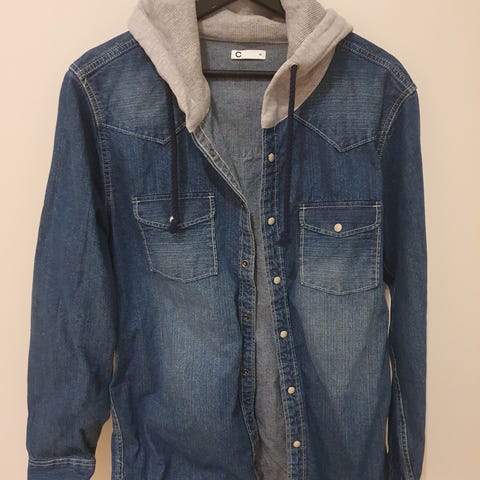 Cubus skjorte med hette for herre i størrelse M. Skjorten er blå og har lange ermer. Den har knappelukking foran og brystlommer med klaff. Hette med snøring er festet i kragen. Passer til hverdagsbruk og kan brukes alene eller som et lett lag over t-skjorte.
