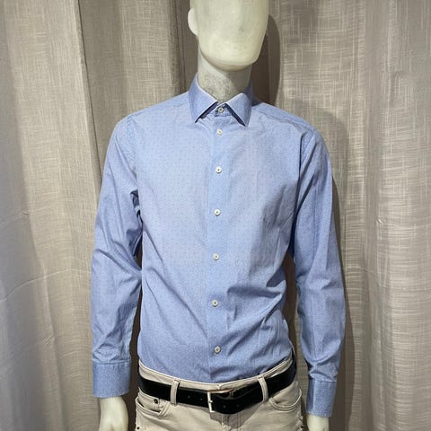 Klassisk og stilren kvalitetsskjorte fra svenske Stenströms i lyseblå bunnfarge med et elegant mønster. Denne modellen har passformen «Fitted Body», som gir en moderne profil med god komfort. Perfekt til både formelle anledninger og hverdagsbruk under en blazer.