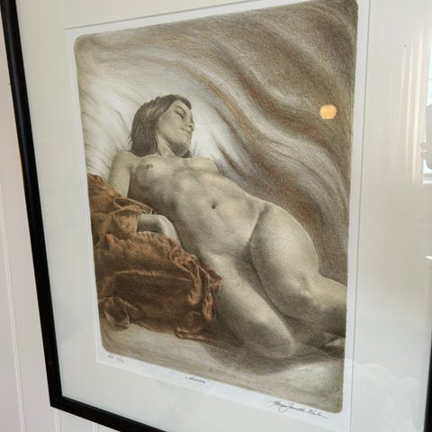 Litografi «Sittende akt» av Harald Kolderup. Nr 18/60.