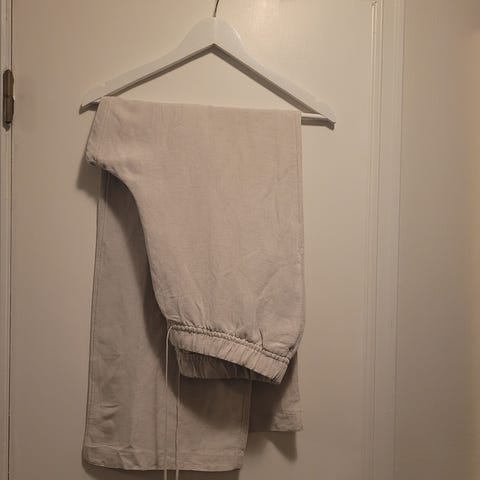 Fin Lin/Viskosebukse fra Selected Femme,str.42(vil si 40/42)Strikk og knyting i livet.Fint fall.Kun prøvet på og hengt i skap.