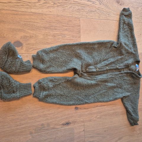 Joha heldress og balaklava i ull for baby, størrelse 62, i grønn farge og unisex passform. Lue i str 41 cm - grønn farge.
