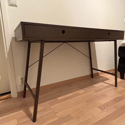 Pent brukt skrive bord med to skuffer og bakkomme til ledninger 🩶