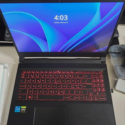 * Det er synlige bruksspor på kabinettet, litt slitte bokstaver på tastaturet, men dette er normalt for en gaming-laptop.