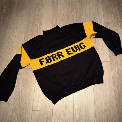 Pannebånd/hals , strikket i Viking sportsragg. Stor og god. 19 cm bredde