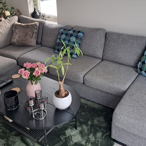 Sofaen ble kjøpt brukt på FINN, opprinnelig fra Skjeidar/Bohus. Den fremstår i fin stand uten synlige skader. Putene holder fasongen og sofaen er god å sitte i.