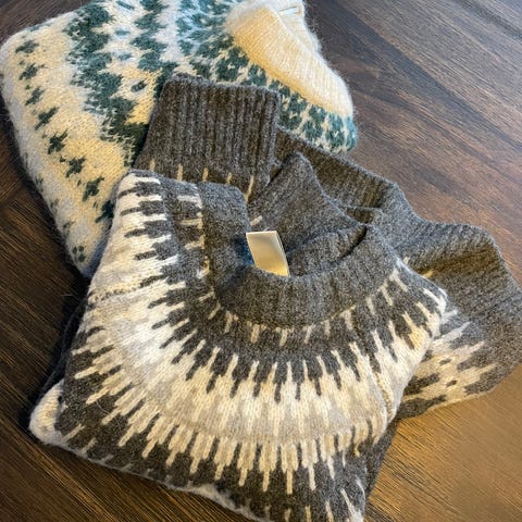Selger min flotte, hvite strikkegenser fra Anyese. Bare prøvd på, men lappen er ikke på.