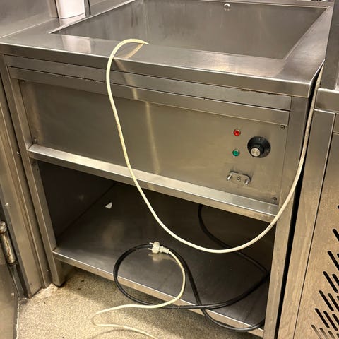 Enheten er elektrisk og tilkobles 220–230 V. Effekt er oppgitt til 1500 W, og kobles til med vanlig stikkontakt. Vannbadet er beregnet for bruk med gastronorm-bakker 1/1 og har et rektangulært kar i rustfritt stål. Fronten har to brytere, en for regulering av temperatur. En for å skru av og på vannbadet.