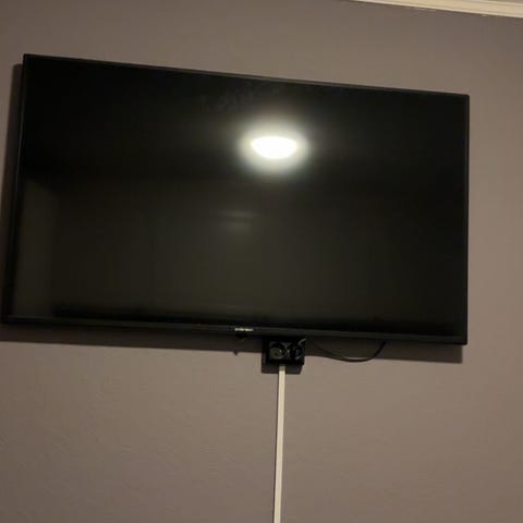 Skjermen er defekt og TV-en mangler bein. TV-en er 2025 modell.
